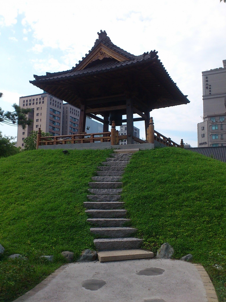 台湾の地下鉄MRTの西門駅でおり、すぐそばにある西門紅楼を見た後に、広い通りを少し歩くとあります。日本統治時代に日本の西本願寺を模して作られたお寺のようですが、今は小高い丘の上に鐘楼があるだけで、公園のようになっています。