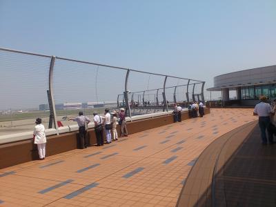 羽田国際線のターミナルは新しく、江戸小町や羽田日本橋などのスポットもありとても良いターミナルだと思います。フライトまで少し時間があったので、羽田日本橋の先の5階まで登り、飛行機の離発着をしばらく眺めて気分転換しました。国際線ですが日本の国空会社の飛行機がメインです。