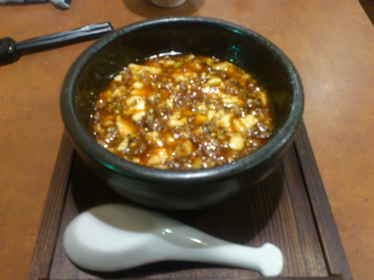 日進市の岩崎城のふもとにある中華料理屋さんです。とてもおしゃれなお店で、岩崎という場所柄に少し合っていませんが。四川料理のお店なので、辛いです。ハーフの麻婆豆腐を注文しました。辛さは好みで5段階選べますので、ふつうより辛くない方を選びましたが、それでも山椒のパンチが強烈でした。