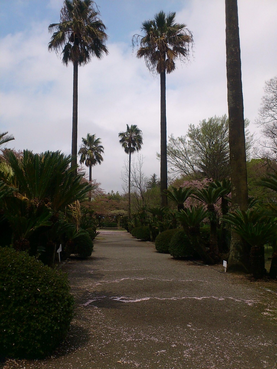 熊本城の北側、加藤神社の先の方にあります。九州森林管理局管轄なので、無料で入れると思いましたが、入場料200円を徴収されます。3haほどの敷地の中に800種類もの植物が植えられています。真ん中にメインの道があり、左右にソテツやヤシの木が植えられています。