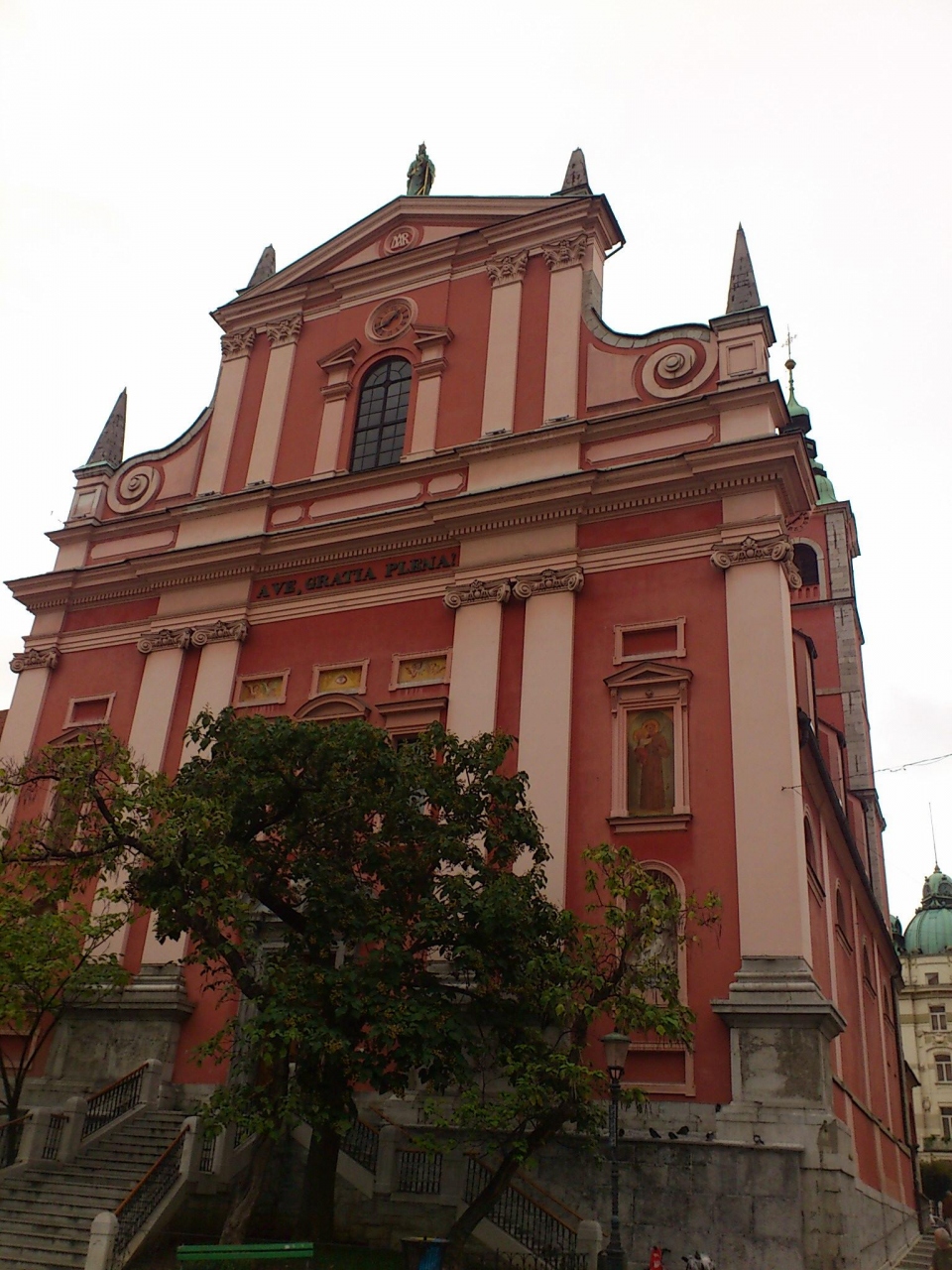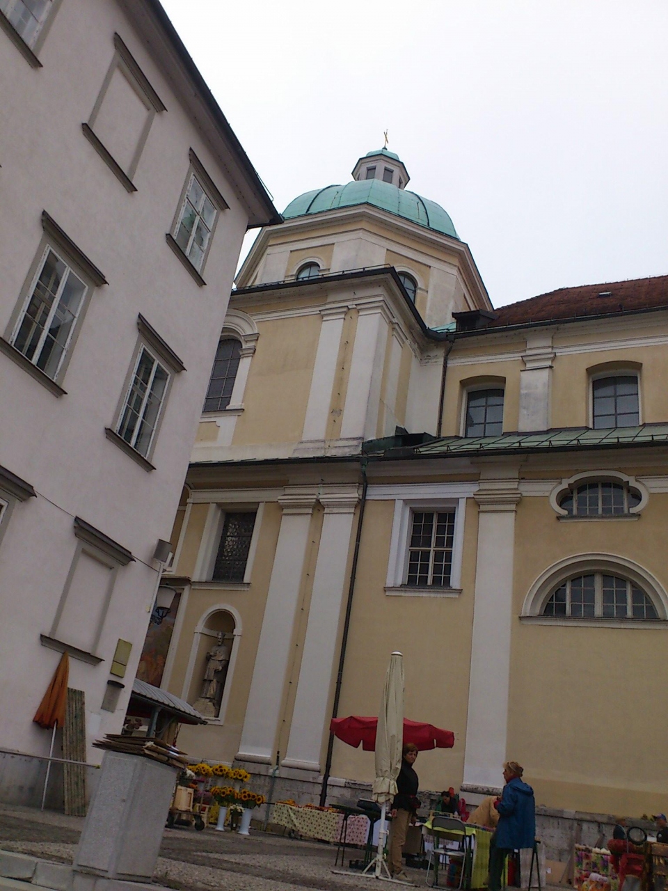 聖フランシスコ教会の前に広がる広場です。広場と呼べるほど広くありませんが、聖フランシスコ教会と三本橋トロモストヴイエの間にあるので、多くの人で賑わっていました。広場の三本橋トロモストヴイエ側から聖フランシスコ教会の写真を取ると、全景を入れることができます。