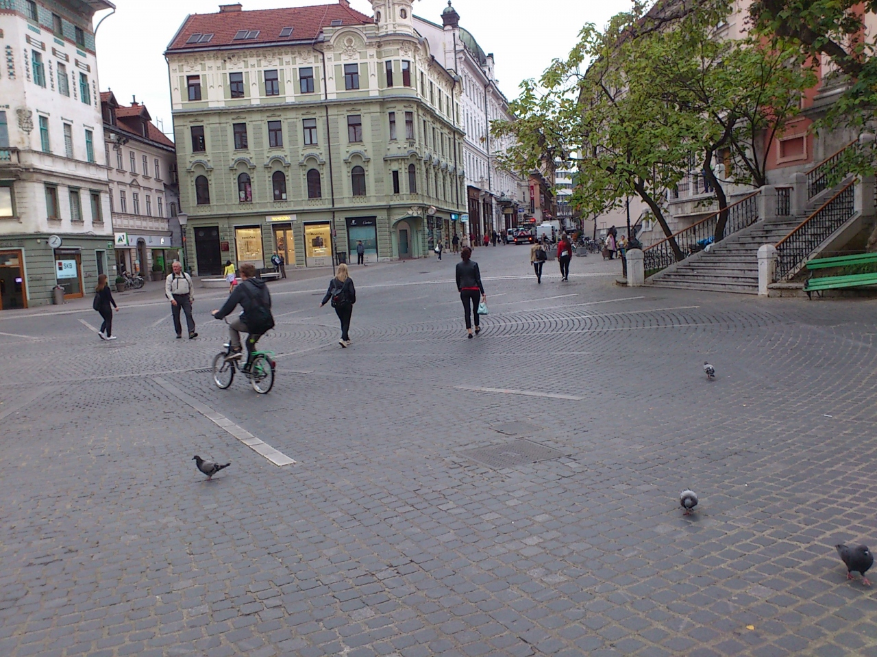 リャブリャナと言うと三本橋トロモストヴイエが有名ですが、リュブリャニツァ川にはいくつもの橋が架かっています。南京錠が欄干にたくさん掛かっているブッチャーズ橋や四隅の龍の銅像が見事な龍の橋などがあり観光客で賑わっています。それに対してこのシューメイカーズ橋は、三本橋トロモストヴイエを中心にすると他の橋とは反対側にあり、近くに見所もないせいか、観光客もおらず静かでした。欄干に円柱が建っているのが特徴です。この辺りは閑散としているので、この橋はパスしても良いかと思います。