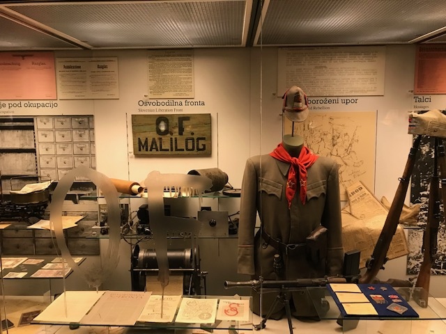 聖フランシスコ教会の前い広がるプレシェーレノフ広場を横切り、三本橋トロモストヴイエを渡って反対岸に行きました。左に行くと聖ニコライ大聖堂に向かいますが、そのまま真っ直ぐ行くと、この市庁舎があります。土曜日の午前中の早い時間でしたが、中にも入ることができました。リャブリャナの歴史などの展示がありました。