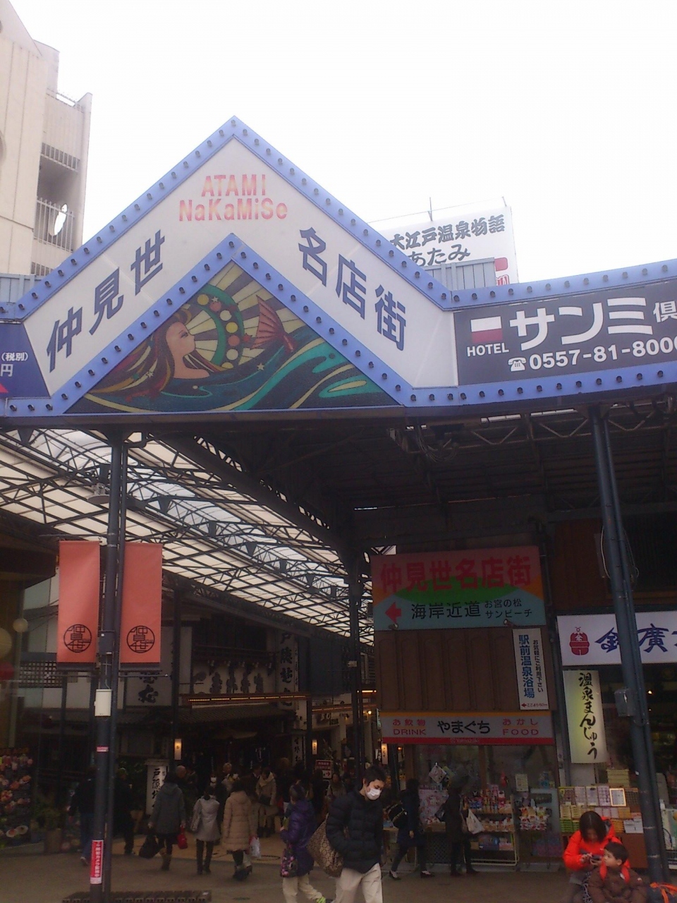 熱海には平和通り商店街とこの仲見世通り商店街の2つの大きな商店街が並んでありますが、賑やかなのはこちらの仲見世通り商店街の方だと思います。熱海駅を降りると、こちらの方が目立ちますし、お店も多いです。お土産屋さんや、熱海で取れた魚介類を食べさせる飲食店など観光客で賑やかです。アーケード形式になっています。