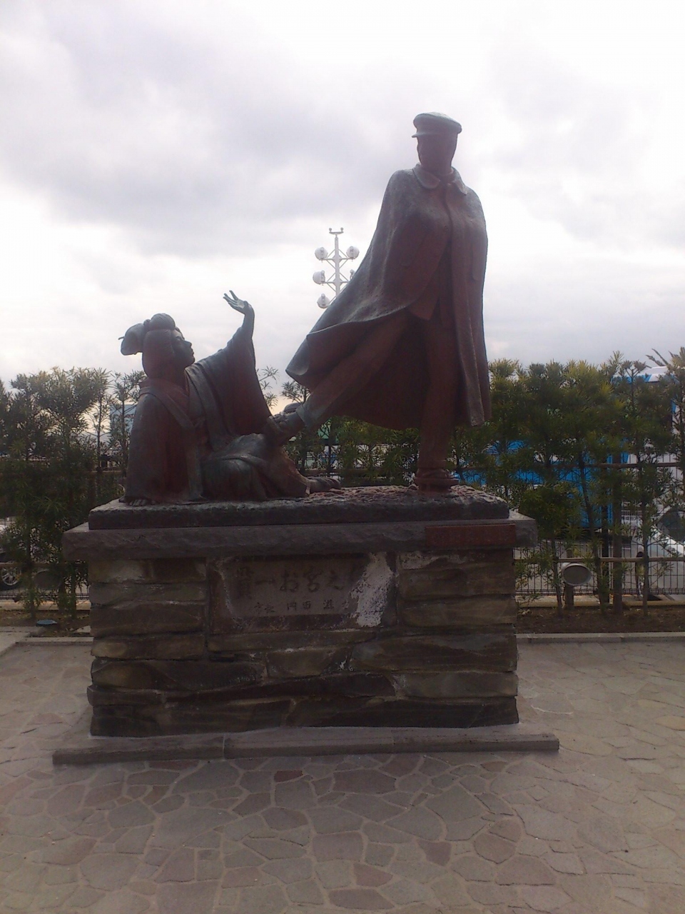 とても有名な金色夜叉にちなんだ貫一とお宮の像です。貫一が縋るお宮を足で蹴り飛ばす姿を描いています。となりにはお宮の松があり、目の前にはサンビーチが広がります。この銅像だけでなく、近くの公園などを含めて散策すると、とても良いです。