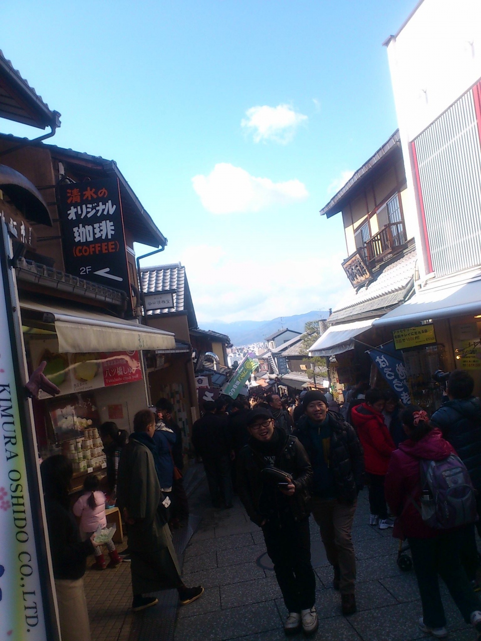 東山五条から清水寺へ登って行くと、道が2つに分かれます。右側のこの茶わん坂の方が近道だとの表示があります。こっちの茶わん坂の方が近いだけでなく、人混みも空いています。名前のとおり、茶わんを売っている店が多く、観光客の多くは賑やかな清水坂の方へ行く方が多いからでしょう。