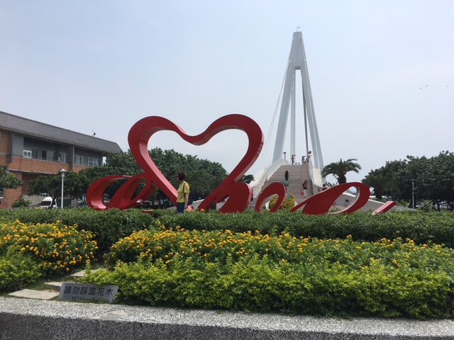 淡水から船で対岸の八里まで渡りました。対岸までは10分ほどで到着でしました。大きな船で大量の観光客を運んでいるので、対岸は人で溢れ返っています。船を降りて右手の方へどんどん進んで行くと、観光客の数も少なくなって来ました。その辺りでBALIと赤い字で書かれたオブジェがあり、そこで観光客が写真を撮っていました。