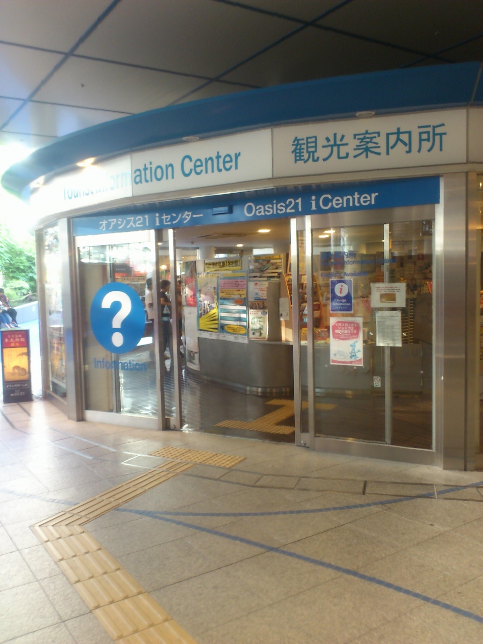 栄のバスセンターのオアシス21の地下階にある観光センターです。チラシが豊富で、係員の方も親切に案内をしてくれるので、名古屋の旅をする時はとても便利だと思いますので、是非立ち寄ってみると良いと思います。ここからは、地下鉄・名鉄・バスが出ているので、名古屋の大抵の場所に行く事が出来ます。