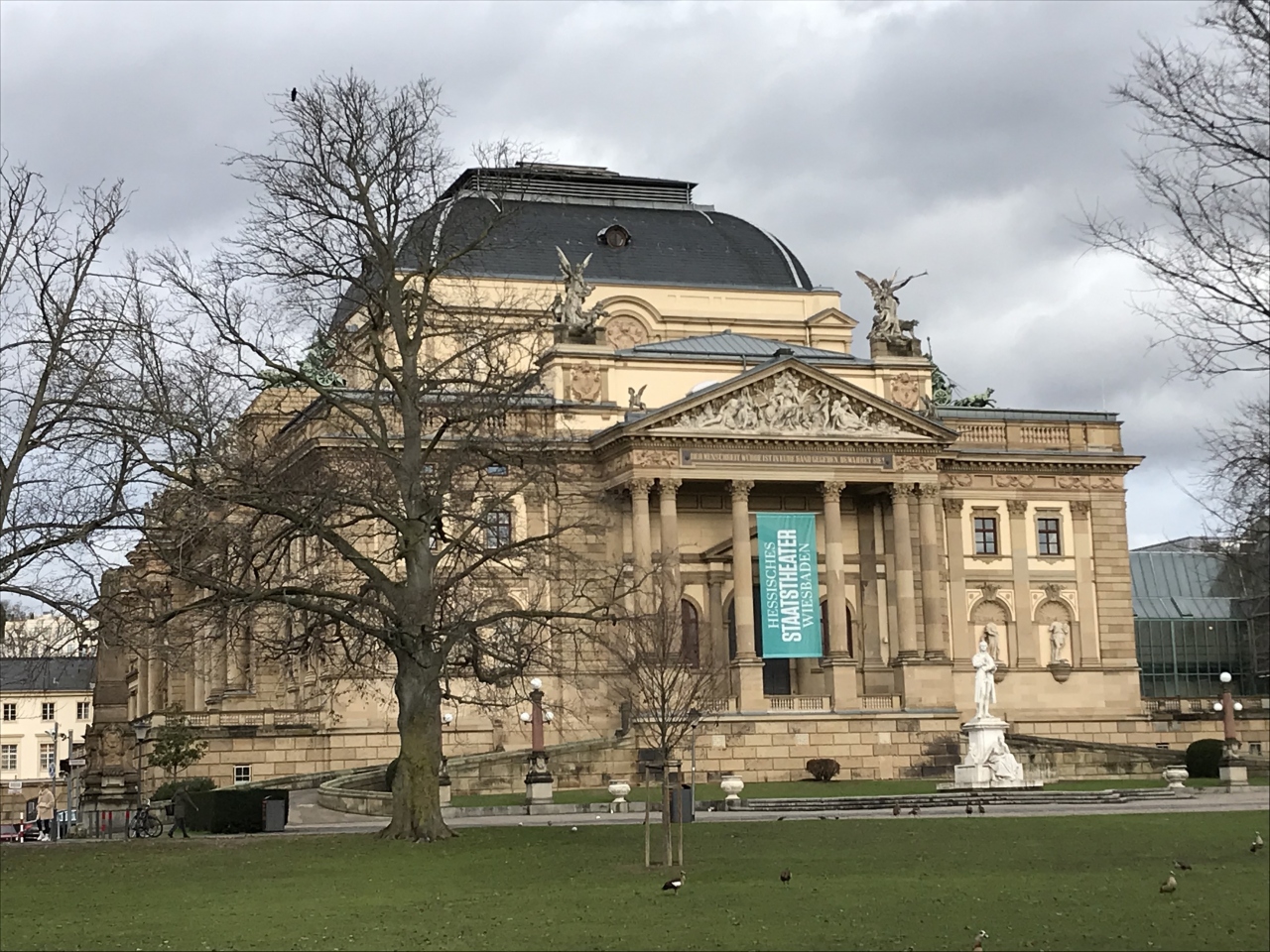 中央駅からクアハウスなどがあるヴィースバーデンの旧市街へ続くヴィルヘルム通りにあります。この辺りは旧市街から少し離れているので、観光客はほとんど見ませんでした。道路の向かい側には、ライン マイン劇場があります。あまり有名では無いようです。