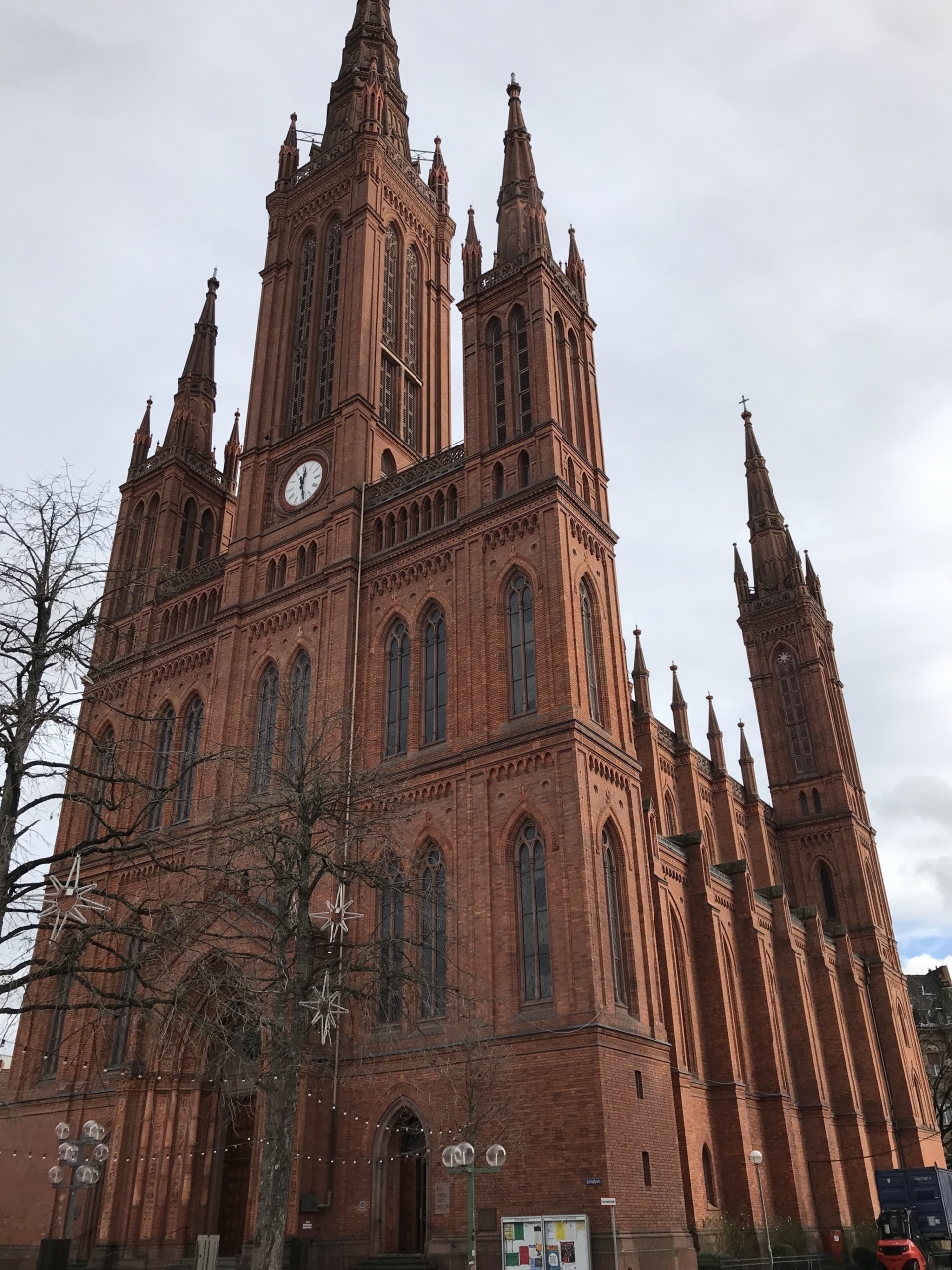 旧市街地の中心にあるマルクト広場に面して建っている赤煉瓦でできた教会です。2つの高い尖塔を持った教会なので、旧市街からどこにあるのかすぐにわかりました。正面から見ると、平べったい感じがしますが、実際は奥行きもあります。ヴィースバーデンには、このての赤れんがの教会が幾つかありました。