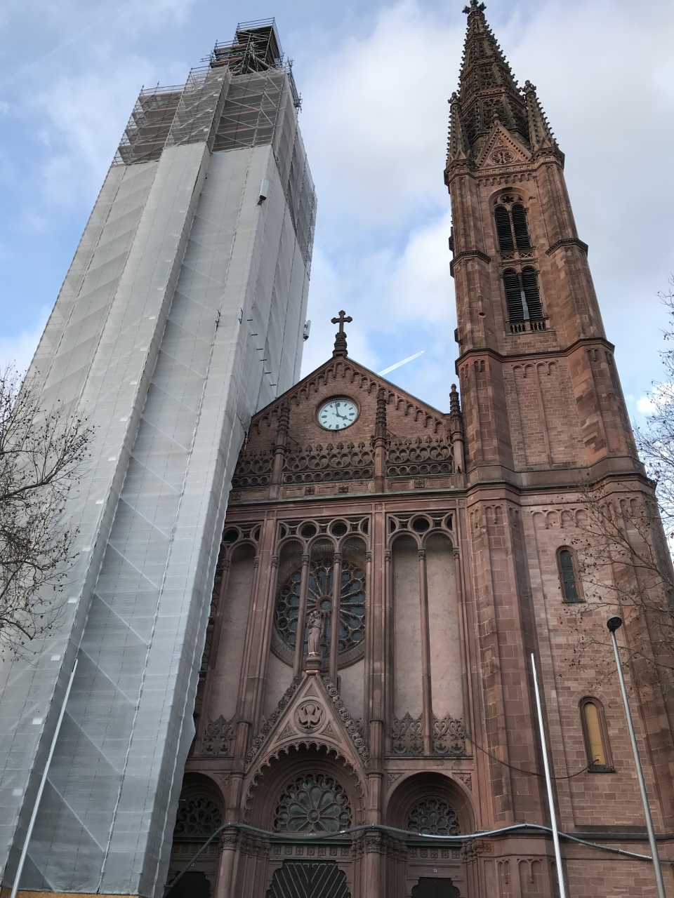 ヴィースバーデンの中心部のLuisenplatzという広場の近くにあった教会です。ヴィースバーデンにはマルクト教会という赤レンガの壮大な教会がありますが、それと同じような赤レンガの教会です。2本の尖塔が聳えていますが、片方が修理中でその立派な姿が見えなかったのが残念です。
