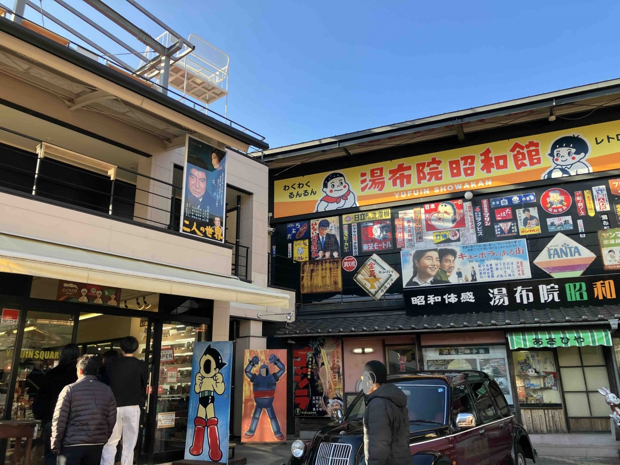 湯布院の観光の中心地の金鱗湖から湯の坪街道を通って由布院駅の方に向かって行きました。湯の坪街道はアジア人の観光客でごった返していましたが、この湯布院町中央児童公園辺りまで来ると人混みもかなり空いてきました。湯の坪街道の終点(始点)近く、Aコープのスーパーの向かいです。公園というよりも広場という感じで、地元の子供と親御さんが遊んでいました。