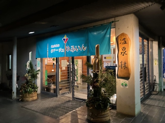宿泊していたホテル(ゆふいんホテル秀峰館)から歩いて3分ほどの場所にあったので、夜でしたが行ってみました。ドイツの温泉施設を模して、水着を着て入る温泉プールがメインですが、普通の日本式の温泉もあります。温泉プールには貸水着込みで730円、温泉だけ入るならもっと安く入れるようです。温泉プールは水深80cmほどで、大きさもそんなに大きくありません。ここは水着を着ているので、男女混合です。日本式の温泉は水着を脱いで入るので、男湯と女湯が別になっています。