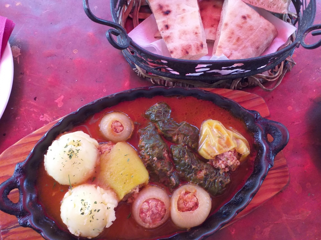 スニアヘルツェゴビナの首都サラエボを訪れた時に夕ご飯を食べたレストランです。サラエボはある時はオスマン帝国、ある時はオーストリア帝国に支配されていた地域で、イスラム教とキリスト教の両方の文化が見ることができます。このレストランはオスマン帝国時代の家屋が残る地域にあり、料理もオスマン帝国の影響を受けた料理です。世界3台料理のトルコ料理なので、とても美味しかったです。