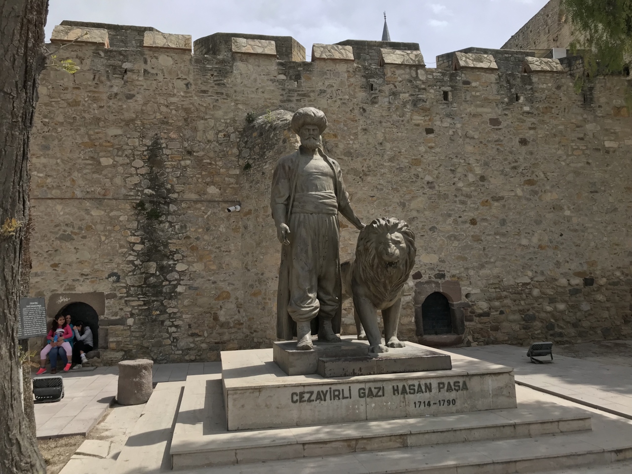イズミールの郊外のリゾート地のチェシュメを訪れました。チェシュメ城の前にこのジェザイルリ・ガジ・ハサン・パシャの記念碑がありました。ジェザイルリ・ガジ・ハサン・パシャはオスマン帝国の提督だそうです。横にいるのはライオンで、トルコにはライオンがいないのでオスマン帝国の植民地から持ってきたものだと思います。オスマン帝国の力がわかります。