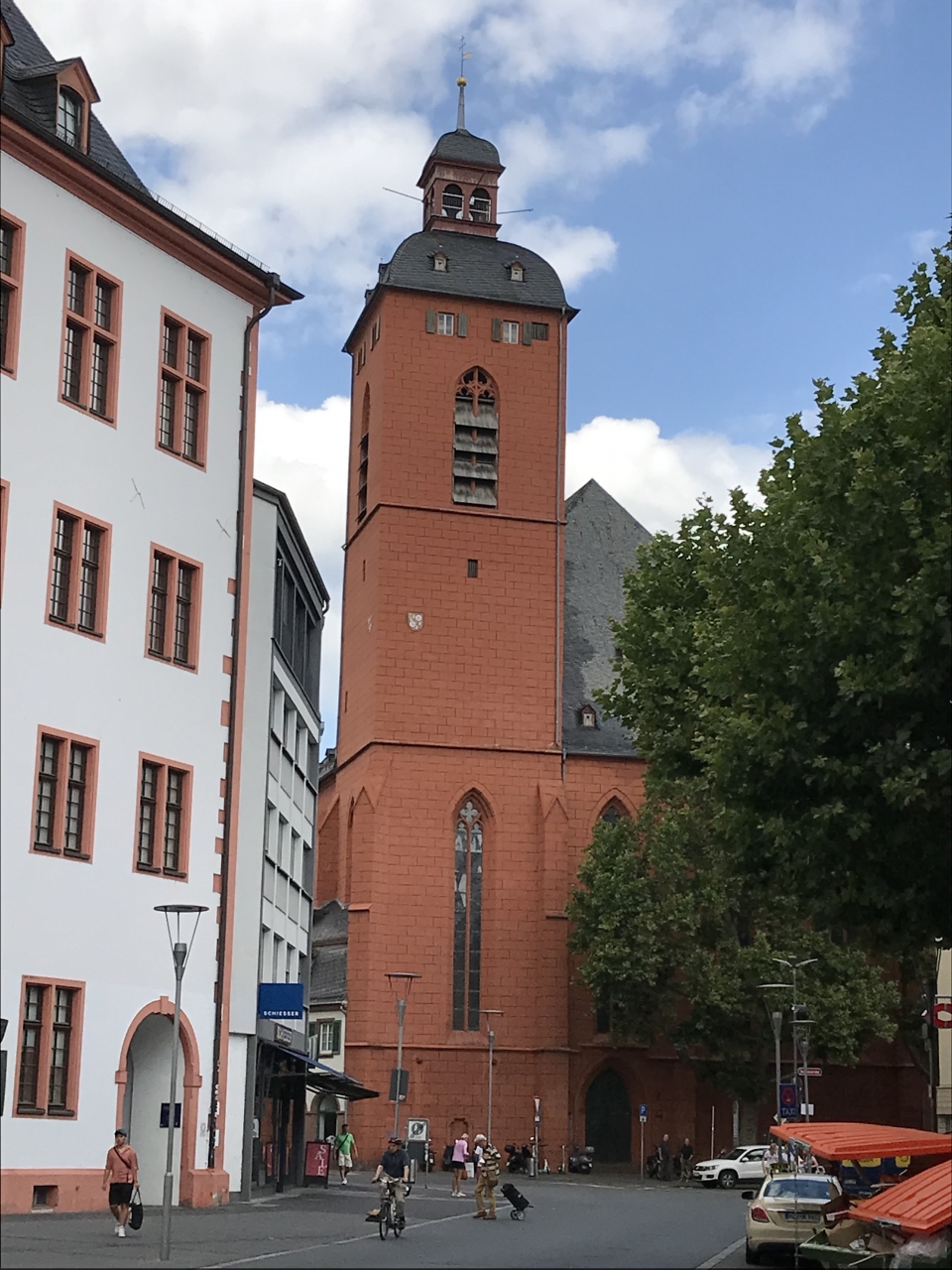 マインツ大聖堂に行った後にグーテンベルク博物館を訪れましたが、グーテンベルク博物館の前にあったのがこのリープフラウエン広場です。マインツ大聖堂の前のマルクト広場が広くて観光客で賑わっていたのに対し、このリープフラウエン広場は小ぶりで、マルクト広場ほど混雑していませんでした。