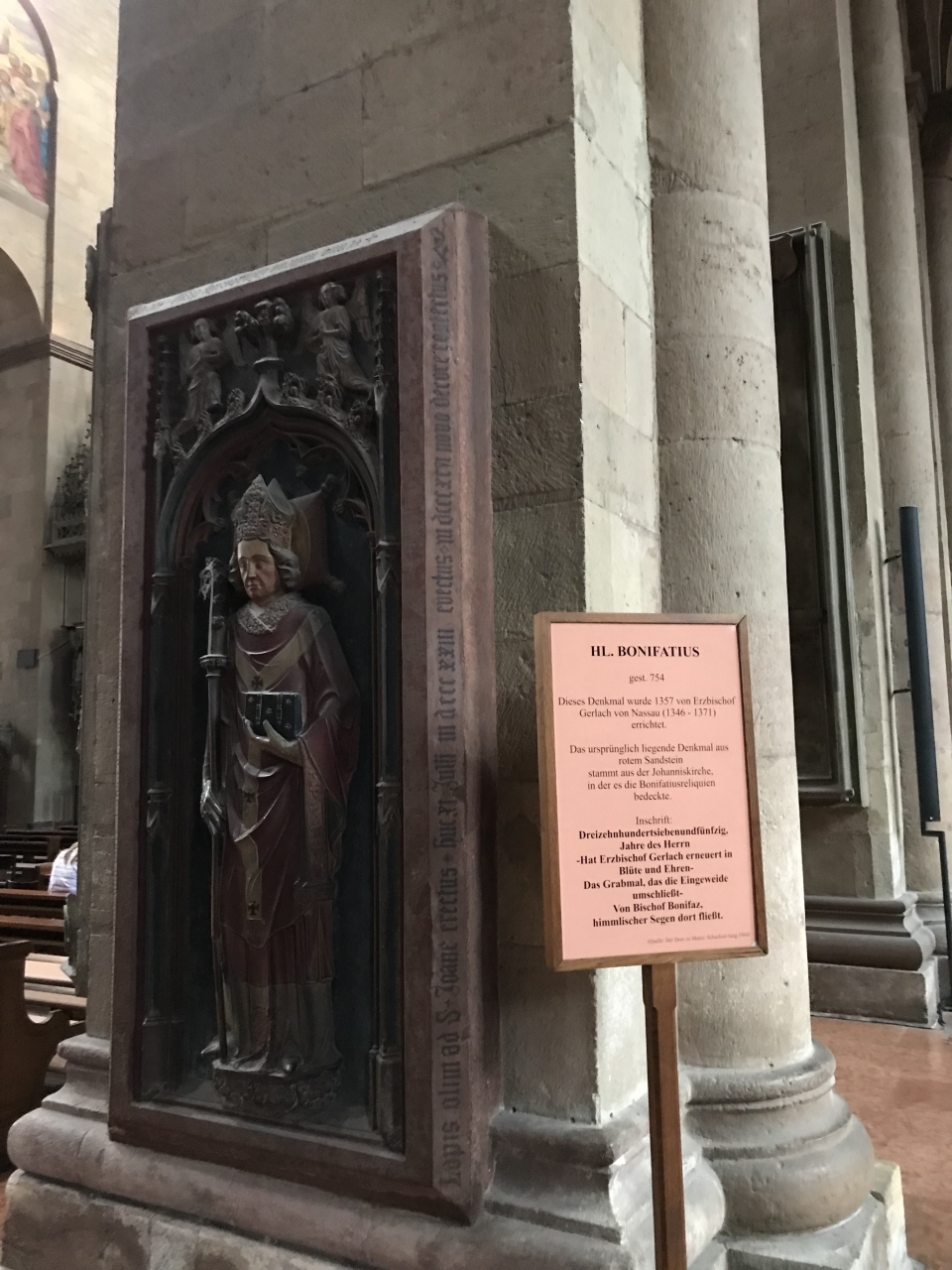 マインツの観光の中心のマインツ大聖堂やグーテンベルク博物館を見終わった後にグローセ・ブライヒェという通りをマインツ州立博物館へ向かって歩いているときに見つけた井戸です。ノイブルネン広場という名前の広場にあります。18世紀に作られたそうですが、第2次世界大戦で破壊され、その後再建されたそうです。バロック様式の作りです。