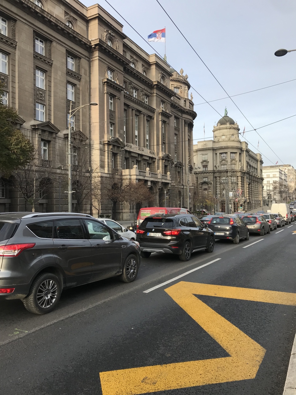 聖マルコ聖堂から聖サワ大聖堂まで少し距離がありましたが、歩いて行った時に通った通りです。この辺りは碁盤の目のようになっていますが、このkralja Milana通りは斜めに世凝っているので近道でした。最後はロータリーのスラヴィア広場に突き当たります。左右にお店や公園などがある賑やかな通りです。