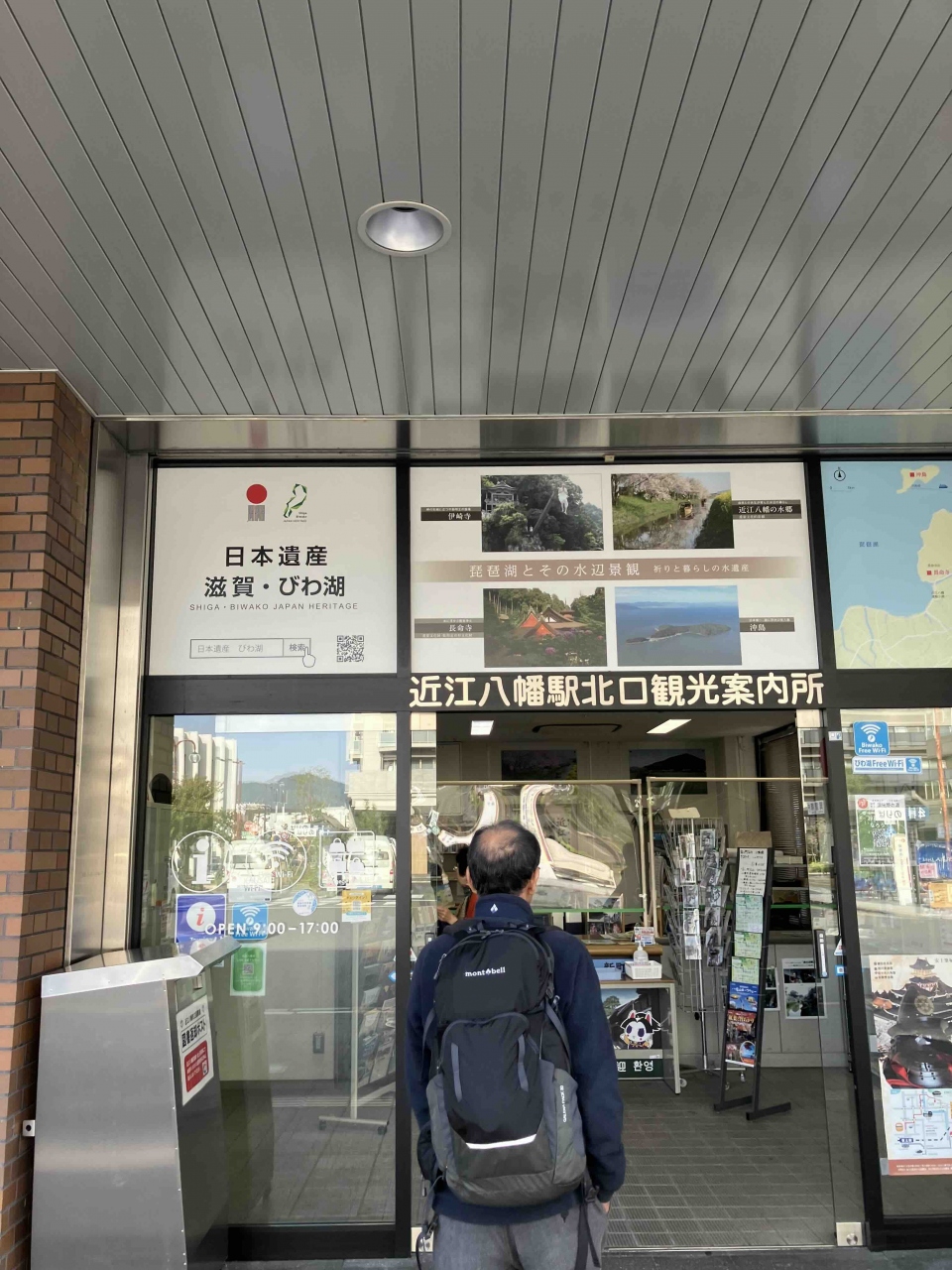 JR近江八幡駅の北口の1階にあります。朝は9時から開くようです。すぐそばには八幡堀へ行くバス乗り場があるので、ここでいろいろな情報を仕込んでから八幡堀へ行くのが良いと思います。そんなに大きな観光案内所ではありませんでしたが、係のかたが丁寧に説明してくれます。