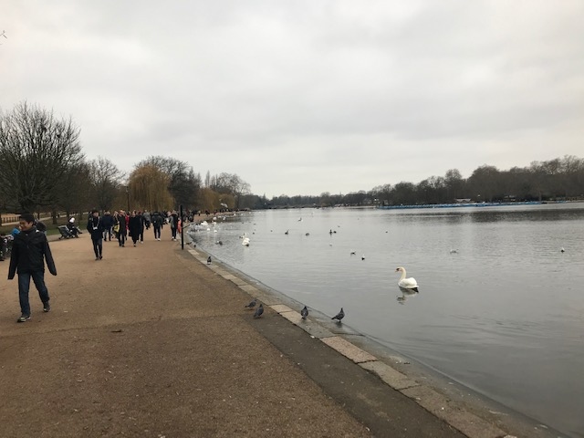 ハロッズの最寄駅のナイツブリッジ駅からすぐの場所にありました。ちょっと中に入るとサーペンタイン・レイクという名の池があって、水鳥が泳いでいました。周りにはベンチがたくさんあり、座って眺めていると長閑な雰囲気でした。