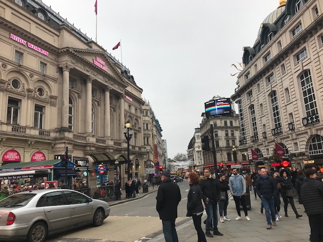 ロンドンの商業の中心地ピカデリー サーカスから伸びる通りです。クリスマスが終わった後でしたが、飾り付けが少し残っていたので、余計華やかに見えました。少しカーブを描いた通りですが、両側に高級店が立ち並んで、まるで日本の銀座のような通りでした。