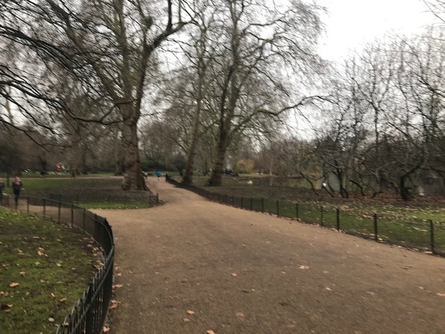 ウエストミンスター寺院からバッキングガム宮殿へ歩いて行く途中にある広大な公園です。バッキングガム宮殿へはこのセント ジェームズ パークの中を歩いて行くと便利だと思います。年末だったので、木々の葉は落ちてしまっていましたが、それでも所々に緑があり、気持ちの良いものでした。