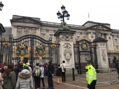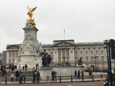 ウエストミンスター寺院からセント ジェームズ パークを経由してバッキングガム宮殿へ歩いて行きました。まず最初に目に入ったのはこのクイーン ヴィクトリア記念碑です。ロータリーのようになっていて、真ん中に金色のオブジェが乗った台座があります。台座にはヴィクトリア女王が座っています。ビクトリア女王への尊敬の念を感じる記念碑だと思いました。