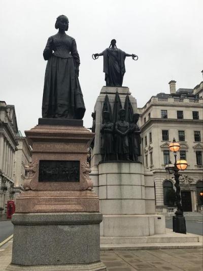 バッキンガム宮殿からトラファルガー広場へ向かって歩いて行く時に小さな広場のような場所があり、いくつかの銅像や、このヨーク公記念碑がありました。ヨーク公記念碑とは反対側の場所に、このクリミア戦争の記念碑があります。ナイチンゲールの銅像もそばにあり、そちらの方が印象的でした。