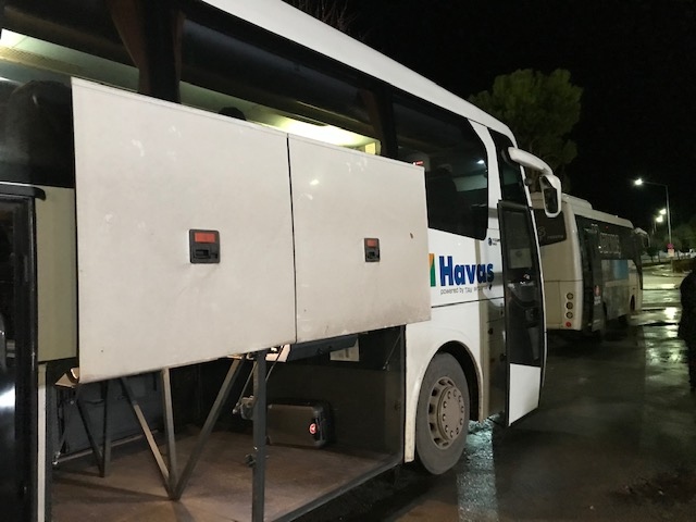 ガジアンテップ 空港から外に出ると、空港バスが3台停まっていました。目的地のイビスホテルを告げるとどれに乗れば良いか教えてくれました。市街までは13トルコリラ、約30分で到着しましたが、そっれから乗客のリクエストであちこち立ち寄ったので、目的地まで約1時間かかりました。その代わりホテルの目の前で降りることができました。空港バスにしては小回りが効きました。