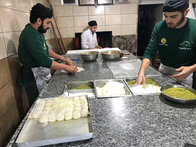 トルコの美食の街ガズィアンテップで有名なデザートのカトメルで有名なお店です。デザートなのに朝食がわりに食べるそうで、朝食として食べに行きました。旧市街のちょっとわかりにくい場所にありました。カトメルを作るのを見せてくれます。薄い弾力のある生地に砂糖やクリームを入れて折り畳んだ後に焼きます。牛乳も一緒に出てくるので、ちょうど良い組み合わせでした。