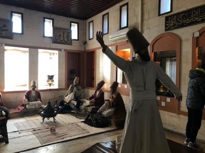 旧市街をぶらぶら散策していたら、Tekke Camiというモスクがあったので入ってみるとこの博物館がありました。無料で入ることができました。展示はメヴレヴィ・スーフィーの修道会の歴史に焦点を当てていて、かつてモスクの床を飾っていた修道服や絨毯などを展示していました。