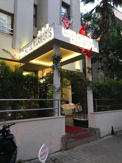 マルマリス の海岸沿いの大通りから住宅地の中に入ったところにあるホテルです。3つ星ホテルで、まだ改装して新しい感じでした。街の中心部には近いのですが、この辺りにはレストランなどがなく、その代わりコンビニがたくさんありました。ちょっと安っぽい感じでしたが、小さいながらもプールもついていて、リゾート感も味わえます。