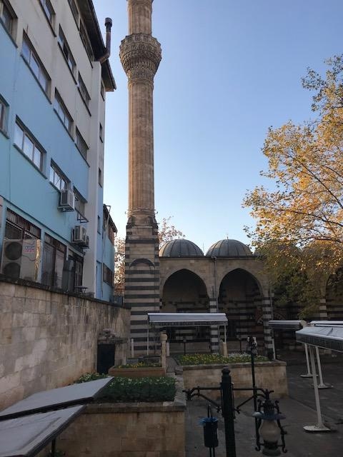 トルコの美食の街ガズィアンテップで有名なデザートのカトメルで有名なKatmerci Zekeriya Ustaへ行く途中にあったモスクです。ヌリメフメットパシャモスクサバーク通り沿いです。フランスの占領中に軍事倉庫として使用されていたそうですが、今はモスクとして復活しているようで、地元の方が礼拝に訪れていました。黒と白の模様が素敵です。