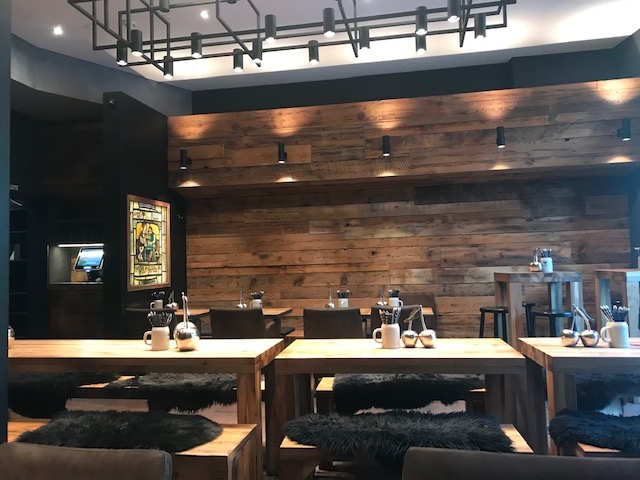 日程の都合でミュンヘン観光が元旦の日になってしまいました。朝の早い時間にマリエン広場に着いて、朝ごはんを食べる場所を探しましたが、ほとんどのお店が開いていない中で、このカフェが開いているのを見つけて入りました。お店の名前通り、マリエンプラッツに面していて、市庁舎の目の前です。お店の人はドイツの伝統的衣装を着ています。