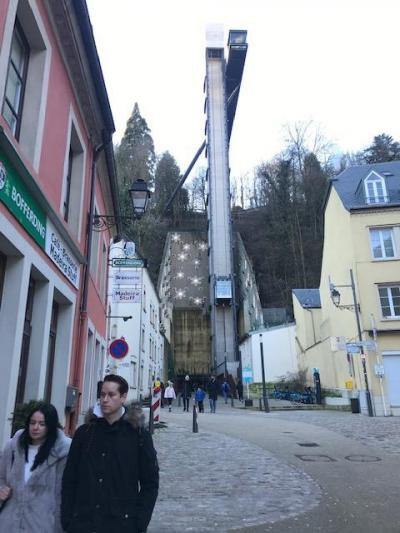ルクセンブルクの旧市街は崖の上にあり、崖の下には渓谷が広がっています。一旦下の渓谷に降りると崖の上に戻るのが大変ですが、何箇所かエレベーターがあります。このPfaffenthal Liftもそのうちの一つです。崖から空中に突き出た形で、先端に行くと眺めは良いですが、高所恐怖症の方には辛いです。無料で利用することが出来ます。