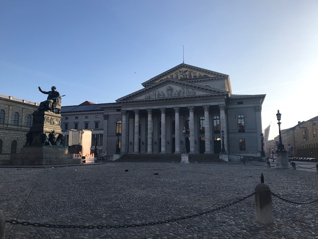 マリエン広場からレジデンツ博物館へ歩いて行きました。バイエルン国立歌劇場の前に広がる広場です。初代バイエルン王マクシミリアン1世の銅像がバイエルン国立歌劇場を背にして建っています。眺めの良い広場です。マックスヨーゼフとはマクシミリアン1世のことだそうです。