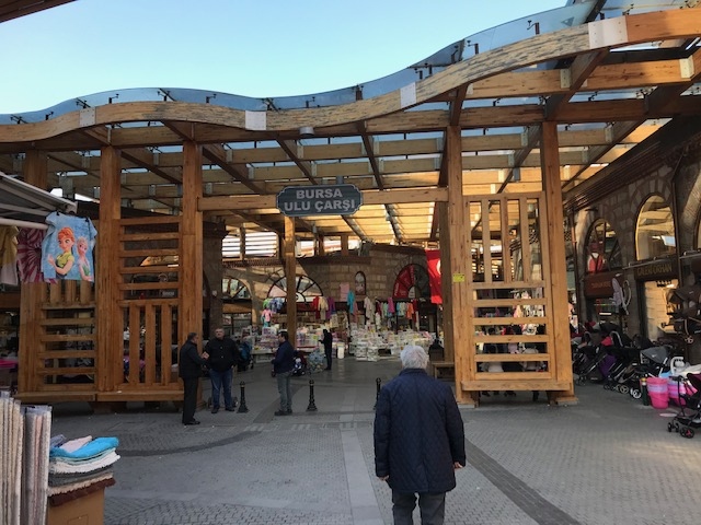 トルコの古都ブルサの中心部にあるウルジャーミーの周りにはとてもたくさんのお店があり、バザールになっています。ブルサ は絹で有名だった様で、衣料や敷物などのお店がたくさんあります。迷路の様な路地にたくさんのお店があり、ブラブラ歩くだけでも楽しいです。
