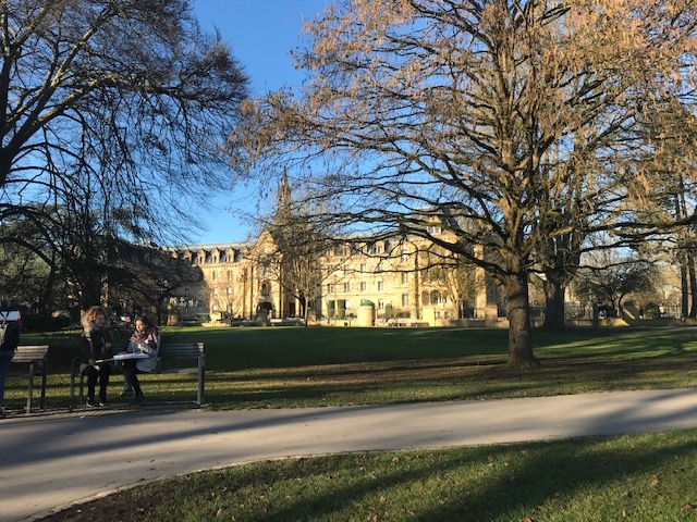 ルクセンブルクの旧市街を散策しているときに見つけました。商業の中心地アルム広場から北へ歩いて行くと右側にありました。シックな感じの建物です。地元では有名なんでしょう。建物の前の広場には、ちょっと変わったオブジェがありました。