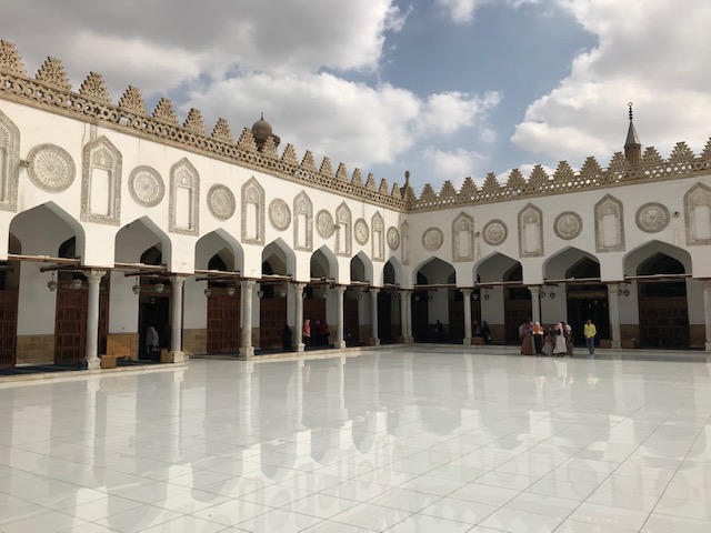 美しいモスクとは聞いていましたが、確かに美しかったです。手荷物検査後にすぐ靴を脱いで中庭に入ると、地面も白いし建物も白いで、それの相乗効果でとても美しかったです。礼拝する建物の中は至ってシンプルで真面目なお祈りの場所だと改めて思いました。