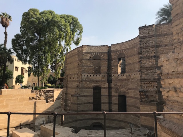 エジプト考古学博物館を訪れた後、地下鉄に乗ってオールドカイロへ行きました。地下鉄といってももう地上に出ていますが、マルキルギス駅を降りると目の前にこのローマ時代の塔と聖ジョージ修道院の丸い建物が見えました。塔の一部と外壁だけが残っているので、あまり面白くなく、すぐに聖ジョージの方へ行ってしまいました。他の観光客もそんな感じでした。