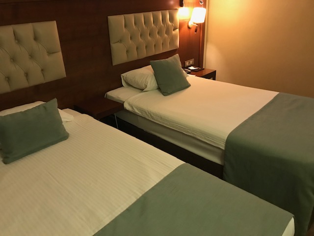 トルコの南東部の都市アダナで宿泊したホテルです。アダナに2泊したのですが、初日は深夜に着いてただ寝るだけの予定だったので、安いホテルにしました。空港からタクシーで20TLでした。夜はわかりませんでしたが、朝起きてみると賑やかな街中のホテルでした。3000円ほどでしたが、朝食付きで部屋もちゃんとしてました。素晴らしいというほどではないですが、コスパは高いです。