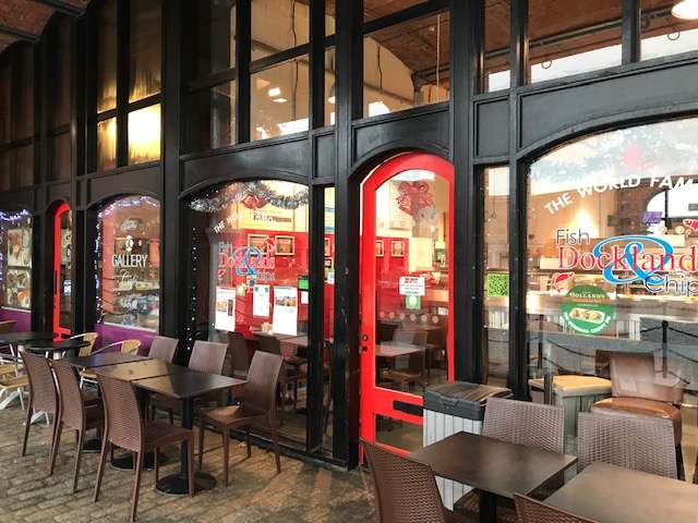 アルパートドックの中にあったお店です。ランチには少し早い時間でしたが、朝ごはんを食べていなかったので、ここでフィッシュアンドチップスを食べることにしました。小さなお店で、テーブル席が何席かあるだけです。フィッシュアンドチップスも皿ではなく、紙の箱で出て来たので、テイクアウトが主なのかもしれません。味はまあこんなものかという感じでした。