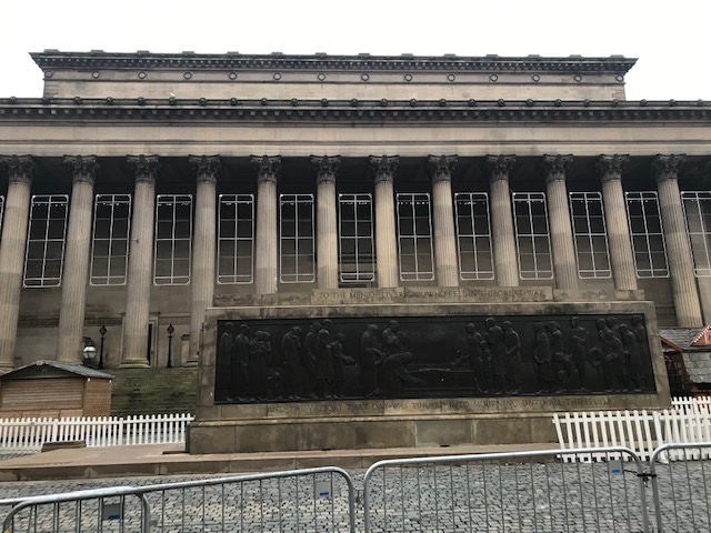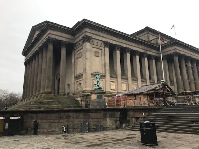 ロンドンのユーストン駅からウェスト・ミッドランズ・トレインズに乗って4時間でようやくリバプール ライム ストリート駅に到着しました。キャバーンクラブへ行く前に、まずは駅の近くの建物群を見学しようと思ったら、もう目の前にこの聖ジョージズ・ホールが現れました。ギリシャ風のホールです。