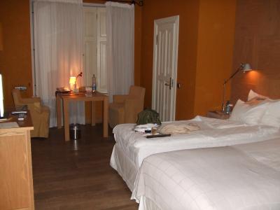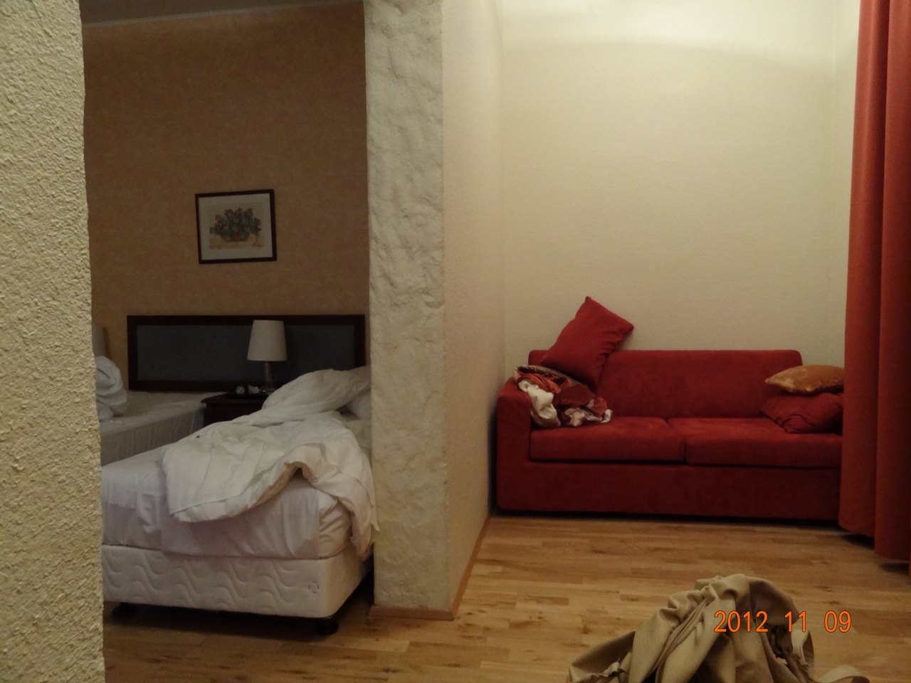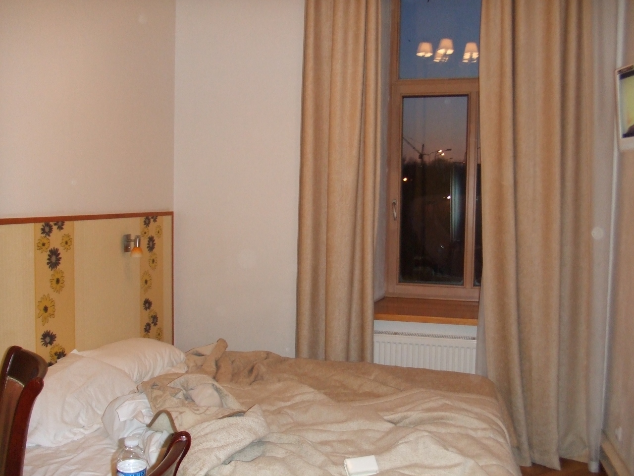 グランプラスと小便小僧の間のロンバート通りにあるプラネットショコラの目の前がホテル入口。石畳を通るのでスーツケースは辛かった…部屋タイプはファーストクラスでも1泊朝食付き95ユーロ。全館禁煙(ホテル出入口に設置)・バスタブなし・コーヒーメーカーなし。シンプルなイメージです。ただ、ベットはシングルをくっつけただけでシーツ・毛布は分裂しているので結果的にシングルで寝るようなもので…。アイルランドでの2ッ☆ホテルと同様、シーツの下からビニール音もします。そこは残念!こうゆうものなんですかね?観光でほとんど出てしまうのでいいですが…。部屋の鍵は2回転程まわさないとしまらず、名刺サイズ3枚分くらいの大きい木彫りのプレートに付いているのでドアを開閉しづらく、カタカタ・ガチャガチャしてうるさいです。外出時ごとにフロントに預けて行くので邪魔にならず助かりました。朝食は一応バイキングですが種類は少なく、簡素な家庭の朝食といった感じです。ほんとに家族経営らしいですが。あとは、ヒーターなので部屋が暖まるのに時間がかかります。シャワールームにもヒーター付いてたので全開しました。2泊でしたが不思議と名残惜しくなるホテルでした。