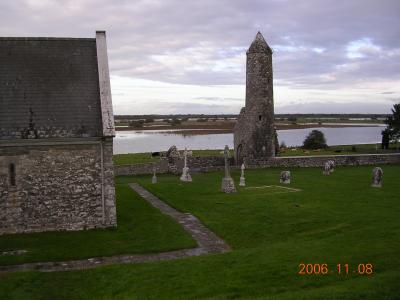 オフシーズンでダブリンから現地発着ツアーがなく、不便。ダブリン・ヒューストン駅から列車で約1時間30分、アスローン駅からタクシー片道約30分。見学待ち時間数十分入れて駅までの往復パック約50ユーロ。英語できなくてもクロンマクノイズと言えば、勝手にパックになった。かといってぼられた感もなく、メーター片道約28ユーロ(ここが嘘か?)になってるのに、待機入りで往復50ユーロは安い!確かに帰りは周辺じゃタクシー拾えなさそう…。入口付近にはうつむいた像や城には見えない城が残っている。ひととおり見てメインの入園。入場料5~8ユーロくらいだったか?とともに日本語説明のプリントをくれる。3時過ぎ頃なのに人がいなくて、風景がいいし写真もきれい!ただ、自分の写真を頼める人が周りにいない。今となって、警備?らしき人が徘徊してたから頼めば良かったと唯一の後悔が残ってる。すぐ隣のシャノン川の横には動物がひたすら草を食べてる、空はどんより曇り、10世紀頃の塔・ケルト十字・墓。このすばらしい図がアイルランドへ来たという実感を高めてくれる。帰りには数種類ある中の5ユーロくらいの写真集を購入した。帰りの車内の夕暮れ時の風景も素晴らしかった!