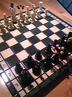 織物会館内を突っ切る通路で売られている特産の木製チェス。