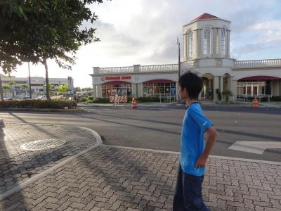 グアム空港で朝食。うどんを食べてるこの長男、帰りの手荷物検査でもやって...