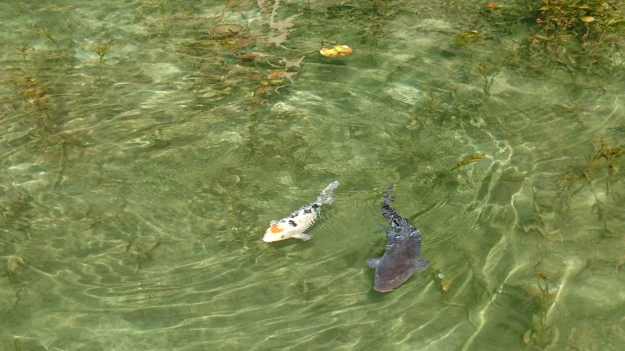 背中(?!)にオレンジのハート模様がある鯉も運良くカメラに収まっていました。
