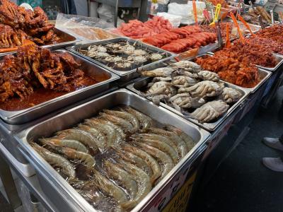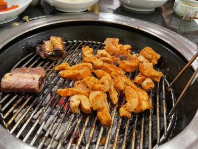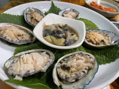 鮑が食べたい主人と肉が食べたい自分…久しぶりに訪問しました。鮑刺身は小ぶりですが、約3000円で6個入っていてコスパ良かったです。新鮮で美味しかった!(サムギョプサルは普通でした…)日本語メニューありです。とにかくここのお店はご主人夫婦の感じがめちゃくちゃ良くて!!以前も来ましたよと写真みせたら(そんなつもりなかったんですがね)鮑がまるまる入ったミオクスープをサービスしてくださったり、ここの白キムチがめちゃくちゃお気に入りで、多く売ってください!と頼んだらわざわざ日本語を喋れる人に電話してくださり「持ち帰るとかなり酸っぱくなりますけれどいいですか?」と言うことを伝えてくださいました。