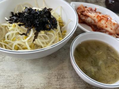 DDP近辺や東大門駅からも徒歩10分以内で行ける朝ごはんに嬉しい豆もやしビビンバ とクッパのお店です。久しぶりに行き、価格が上がっていました。豆もやしビビンバ 40000ウォン、ソコギ(牛肉そぼろ)入りは50000ウォンでした。それでも安いですが。塩茹でした豆もやしを特製薬念をかけていただく。素朴ですが胃にもお財布にも優しい味。行くたびに朝食で食べています。付いてくるお味噌汁も美味しいんです。キムチと味噌汁はこれはおかわりできますよ。料金は前払いです。